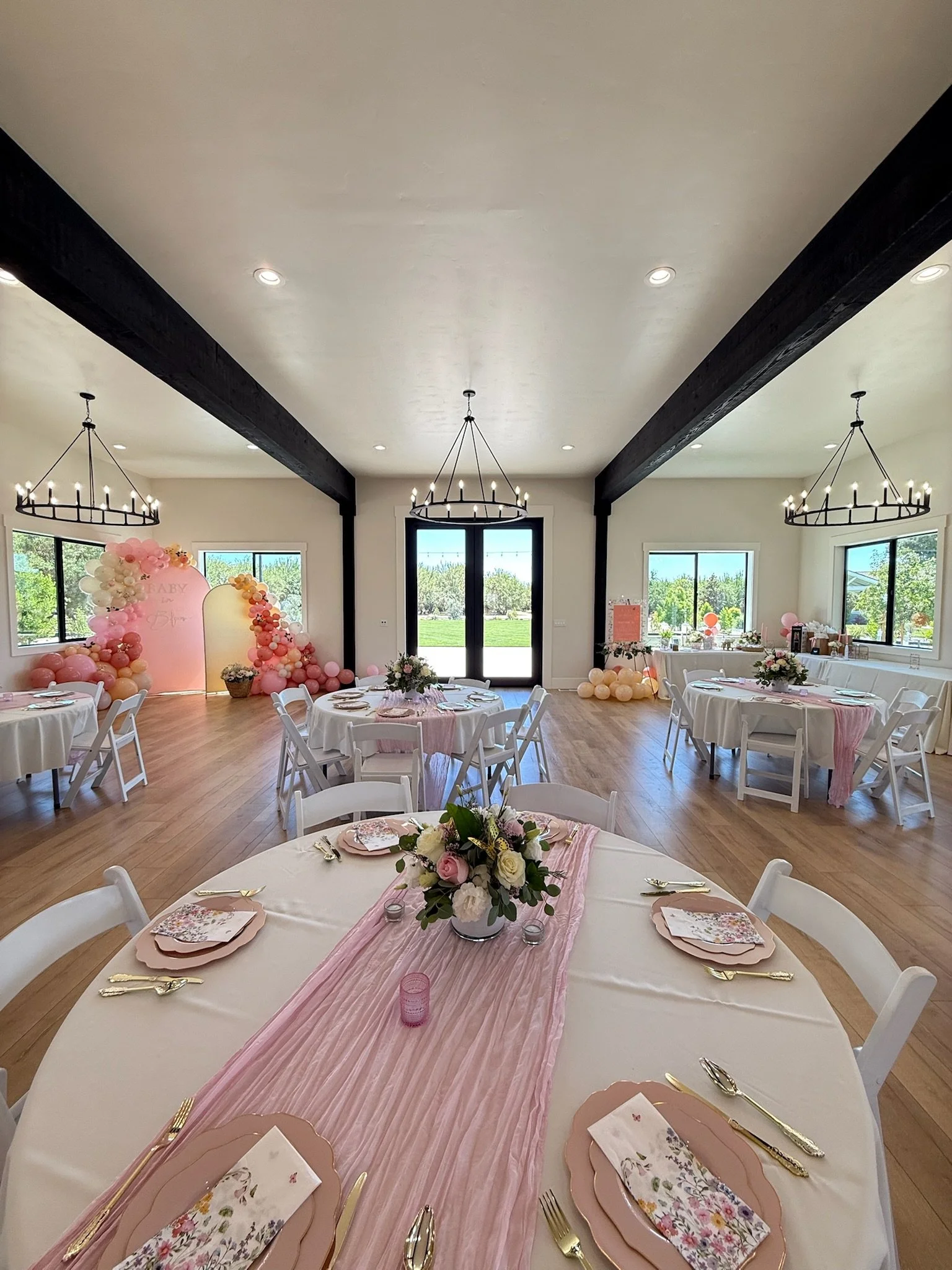 Surrounded by beautiful orchards in Ripon, California, our venue blends an elegant aesthetic with a clean, timeless design. Designed with intention, our white barn features black-accented finishes, providing the perfect setting for unforgettable celebrations. Whether you’re envisioning a romantic wedding, an intimate gathering, or a special event, Almond Blossom Barn offers a space that feels elevated, inviting, and entirely your own.